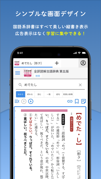小学生から高校生まで使える約50冊の辞書を、アプリひとつでいつでも閲覧