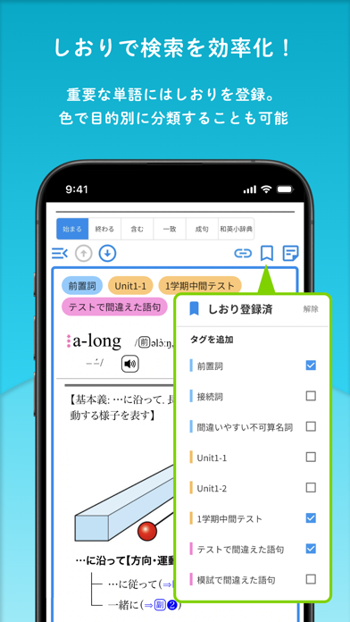 しおりや英語辞典の音声など学習に欠かせない機能がばっちり搭載されています。見直しの手間が削減され、学習がより効率化されるでしょう。