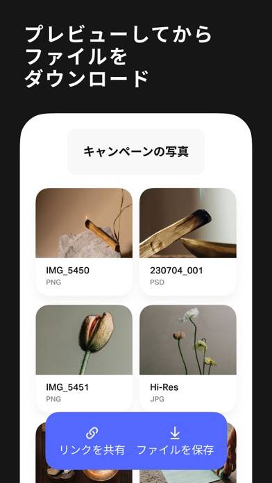 - 共有相手の操作も簡単。URLをタップ後、ダウンロードボタンを押すだけ