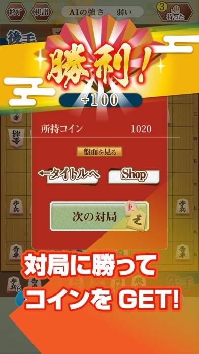 - 特殊ルールなしの正統派な将棋。棋譜で振り返りも可能
