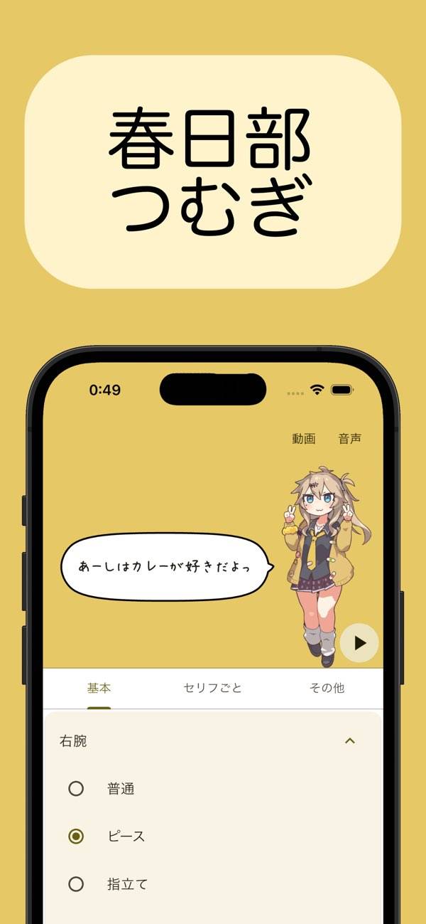 吹き出しの中に好きなセリフを入力できます。再生ボタンをタップすると音声が流れるので、まずはデフォルトでどんな風に読み上げてくれるのかテストしてみるといいでしょう。