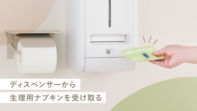 アプリからQRコードを読み取るだけで、生理用ナプキンが受け取れるアプリです。商業施設や公共施設のトイレに専用のディスペンサーが設置されており、そこからナプキンを入手できます。