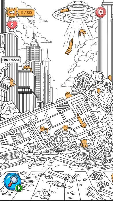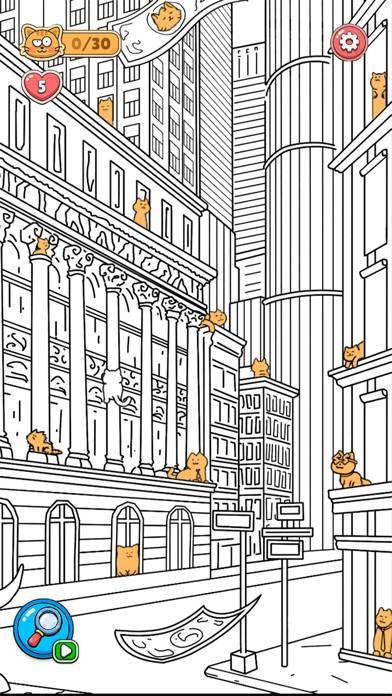 白黒の絵の中に隠れた、たくさんのねこを探していく癒やしのゲーム。ねこを見つけてタップすると「ニャン」と鳴いて反応してくれます。