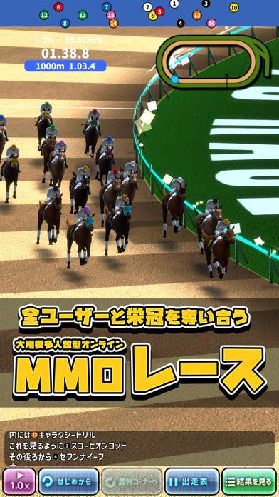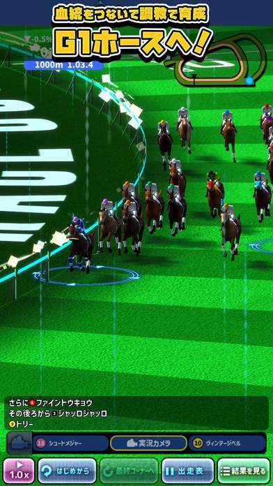レースは現実時間の決まったタイミングで開かれ、リアルタイムで競えます。これまで育ててきた馬が、ほかのユーザーの馬たちを追い抜く展開を3Dで描写。臨場感はあるものの、好きなタイミングではレースに挑めないのが難点です。