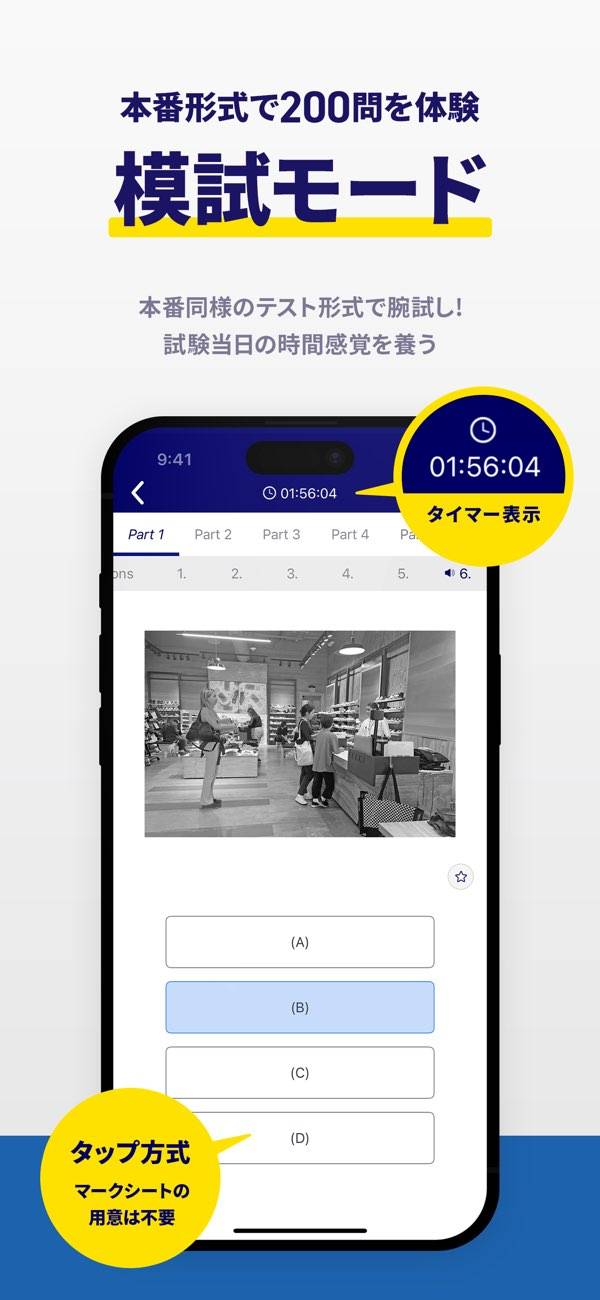 - 本番の時間配分をつかむのにピッタリの「模試モード」も搭載