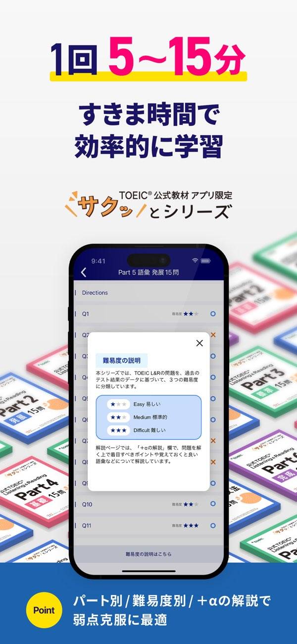 - TOEICの公式教材をアプリで丸ごと勉強可能。無料サンプルもたっぷり