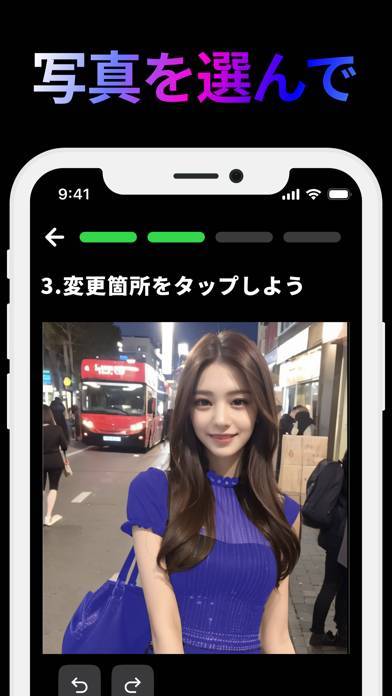写真内の変更したい服の部分をタップすると、服だけを認識して着せ替えできます。あとはテキストで着たい服のイメージを入力するだけで、すぐに完成。衣装の色や柄など細かく入力することでイメージした服装にを生成できます。