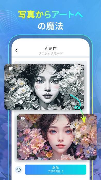 AIイラスト生成のほか、AIツールモードを搭載しています。AIツールでは写真の不要な部分を消したり、画風を変えるフィルターをかけたりと自由な加工が可能。てきとうに描いたラフ画を、美しいイラストに仕上げることもできます。