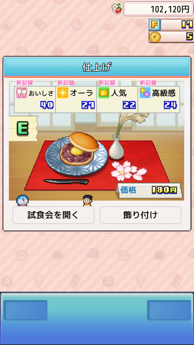 開店準備から楽しめる、本格的な経営シミュレーションとなっています。どら焼き作りの時点で、ベースの皮と中に挟む食材を選び、仕上げを行い、飾りつけ、という工程となっており、味も見た目もこだわれる本格仕様。ゲームを進めると、どら焼き以外の和菓子も登場します。