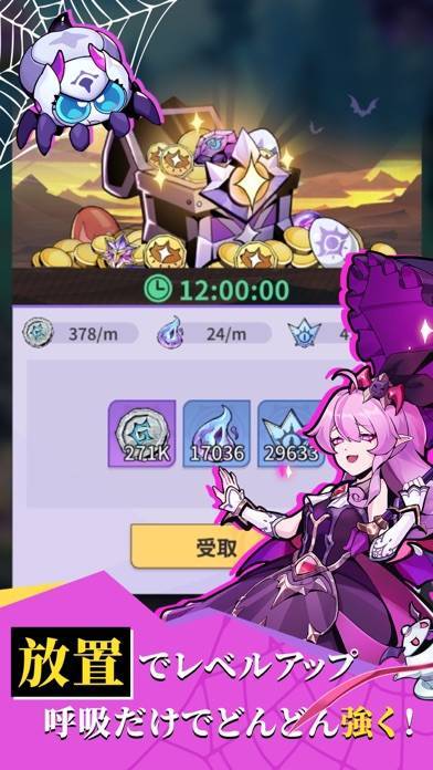 まずは魔王城に挑んでくる無謀な勇者を蹴散らしましょう。タップで金貨を消費し攻撃。このパートでは勇者の攻撃は当たらないため、ひたすら攻撃でOK。倒れた勇者はあえなく経験値素材に。