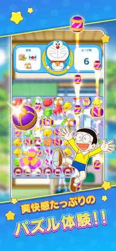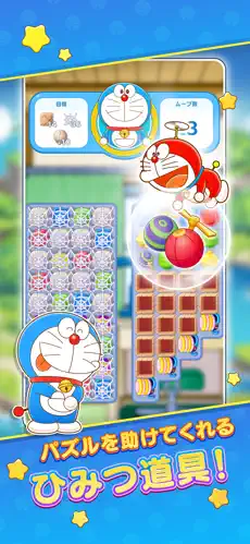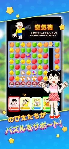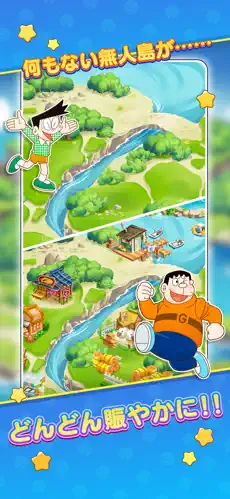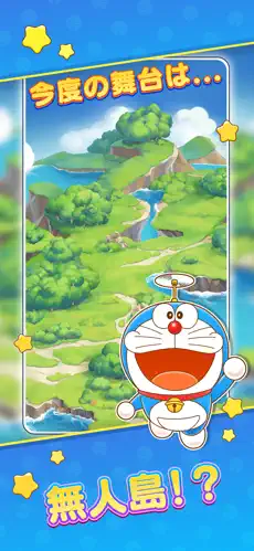 マッチ3パズルをこなして無人島を開拓していくゲームです。パズルをこなすとストーリーが開放され、ドラえもんとのび太が不思議なロボットと出会う物語が楽しめます。