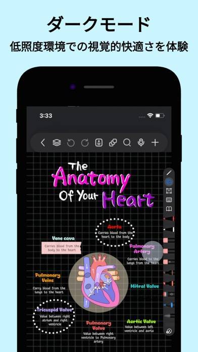 デジタルペンで紙のような書き心地を実現したノートアプリです。Apple Pencilとの相性が良く、繊細な筆圧表現が可能です。フォルダ機能でメモを整理し、PDFへの書き込みにも対応。学生のノート取りやビジネスパーソンの会議メモ、クリエイターのアイデアスケッチなど、幅広い用途で活用できます。