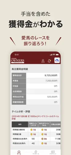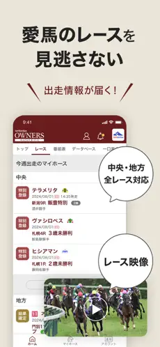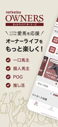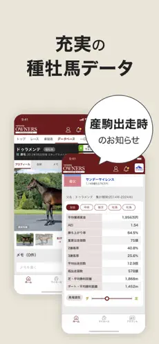 ほかセリ情報など馬主向けの情報も幅広く網羅。ファンなら推し活に、馬主なら愛馬の管理にぜひ。