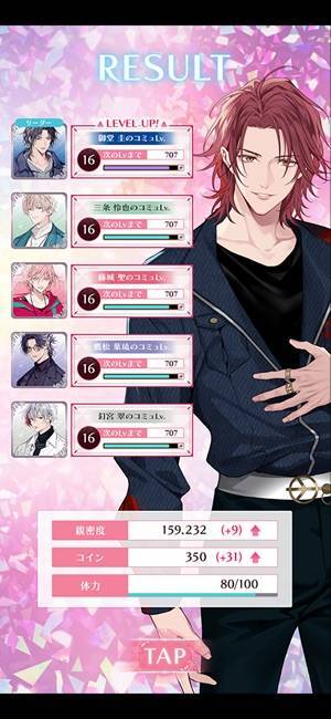 選択肢によって好感度が変化し、条件を満たせばイベントスチルを獲得。思い出に残る彼とのワンシーンを、より臨場感あるイラストで楽しめます。好感度は恋情度と愛情度に分けて管理され、それぞれ選択肢で増える数値が変わります。