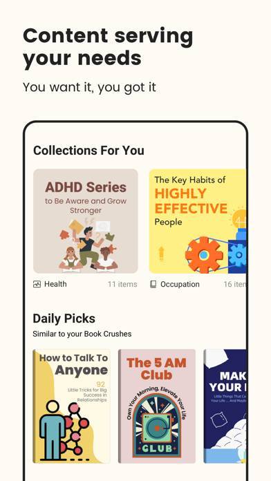 書籍1冊が、15分ほどで読み切れる内容にまとめられています。要約は音声としても再生可能。要約のさらなる要約とも言える「内容は?」「あなたが学ぶこと」も用意されており、それを読めば書籍から何を学べるかを端的に掴めます。