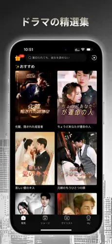 1話1分で観られるオリジナルドラマが多数収録。とくに韓流ドラマが多く、恋愛や復讐ものといったカテゴリが充実しています。