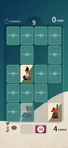 一歩先ゆく神経衰弱がここに。基本はおなじみ、2枚1組の絵柄をそろえる定番ルール。一方で本作には勝負の決め手となり得る4種類のスキルカードが搭載されています。