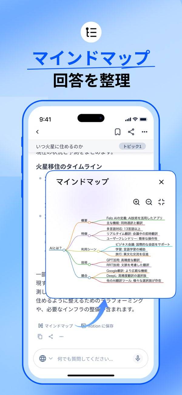 | 生成AIの種類 | ウェブ検索、テキスト生成、翻訳、マインドマップ生成 |