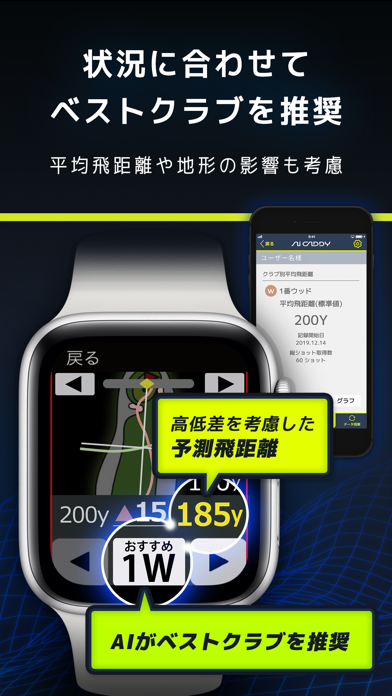 - 個人の飛距離データを学習し、最適なクラブをAIが教えてくれる