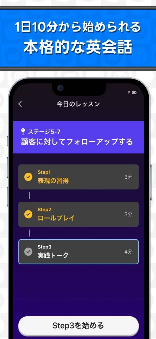 - ステージ形式となっており、一日最短5分から学習できる