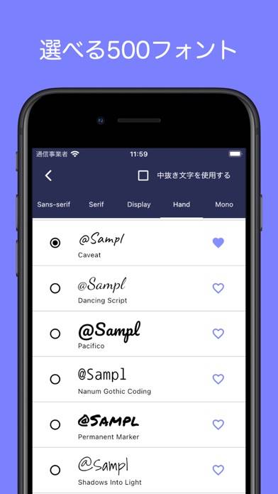- 500ものフォントから自由に選択。デザインにこだわれる
