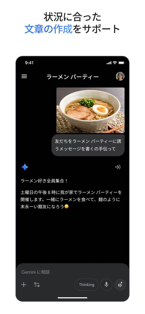 『Google アシスタント』に代わると目される、GoogleのAIアシスタントです。生成AIとしては必要最低限以上の機能を網羅。知りたいこと、やりたいことをプロンプト(命令文)で送れば、AIが「それっぽい」回答を示してくれます。