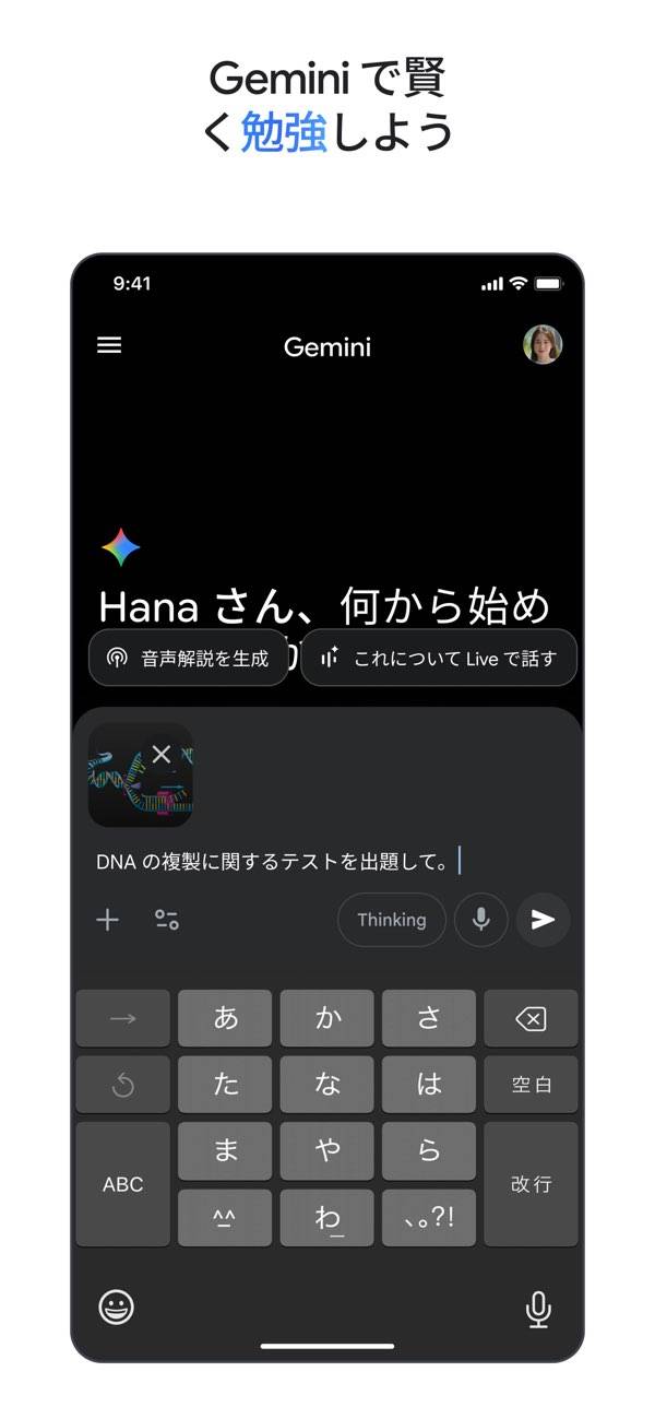 基本的な質問応答や情報検索、Googleサービスとの連携など、主要な機能は無料版でも利用可能です。もちろん画像生成や音声対話といった機能も無料で使えます。数百ページの資料の要約や高度な分析などをしない限りは、無料版で十分対応できるでしょう。