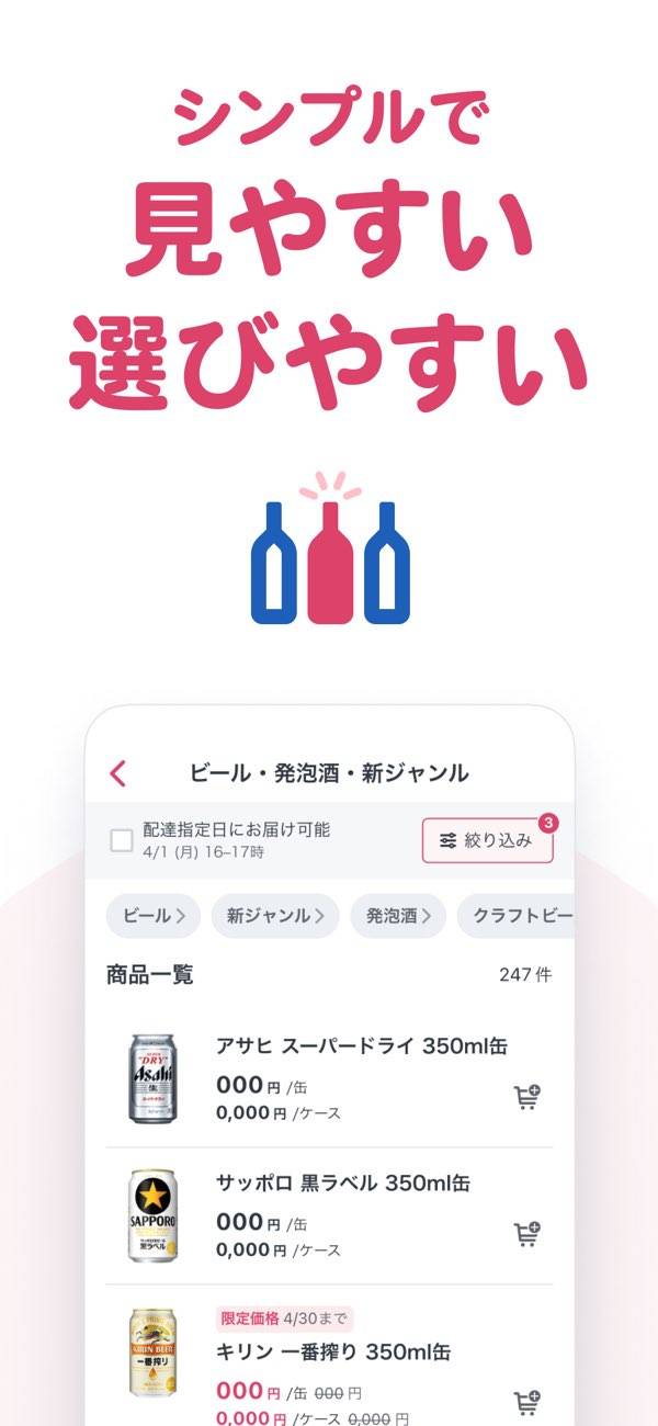 - 最短1時間、ビール1本でも送料無料。酒類配送サービスの有力候補