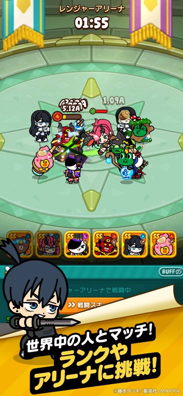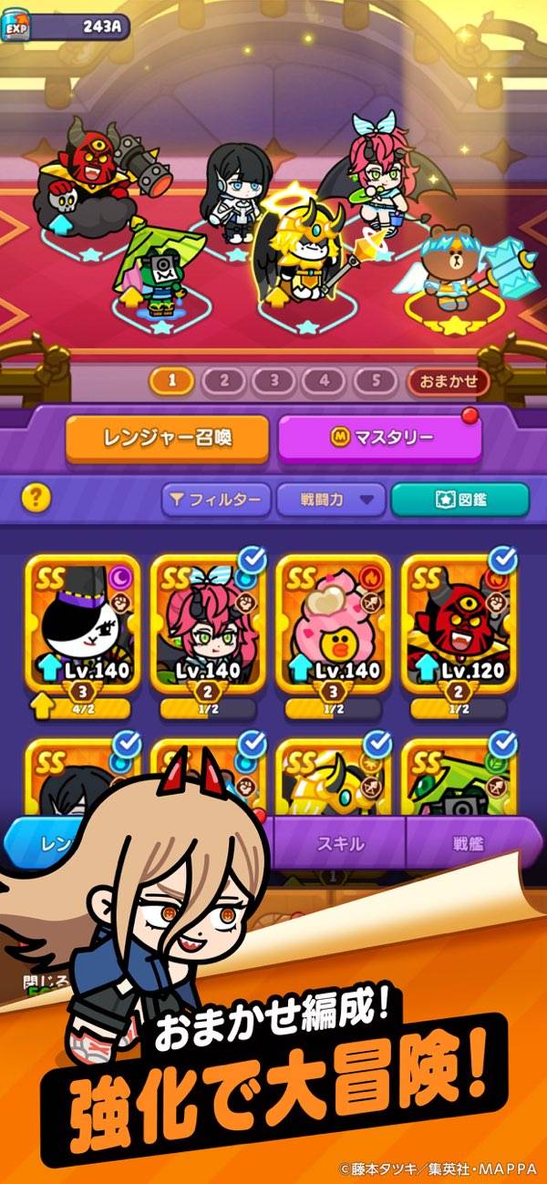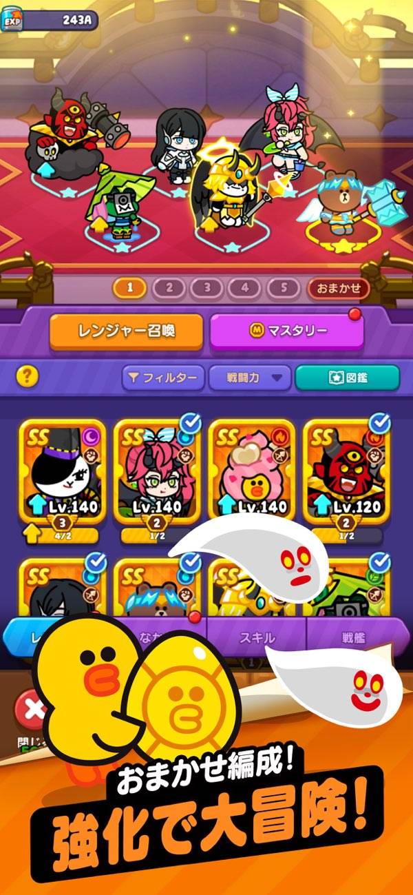 「LINE FRIENDS」でお馴染みのブラウンやコニーが戦うレンジャーとして登場! 放置と簡単操作でゲームが進む手軽なRPGです。