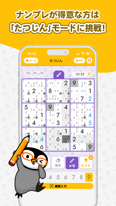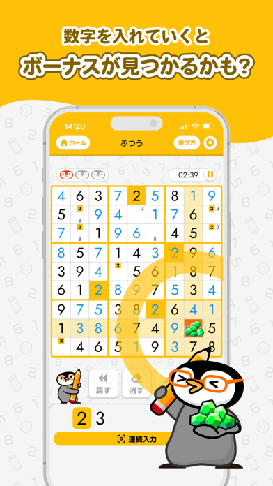 - ナンプレ初心者にも安心のプレイガイドやヒントを利用可能