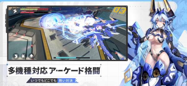 メカ美少女たちが2対2でスピーディーかつ派手な撃ち合い、格闘戦を繰り広げるメカ美少女格闘競技ゲーム。相手を撃破してCOST(コスト)を削り、相手チームのCOSTをゼロにすれば勝利。オンラインでのPvPにもばっちり対応しています。