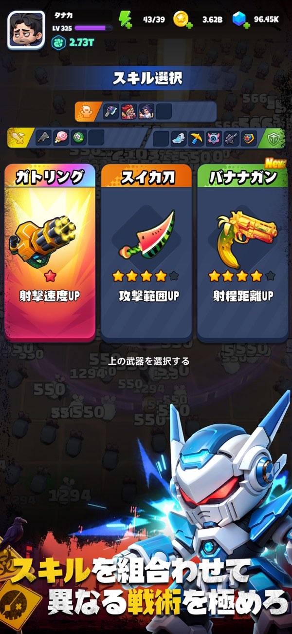 被弾を避けながら立ち回るアクション性と、スキル選択による戦略性、さらにパワーアップのインフレ感が絶妙にマッチ。サバイバー系の面白さはバッチリ踏襲されています。