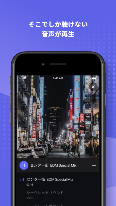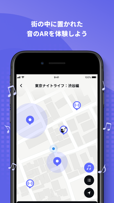 観光名所や施設などを解説する音声を再生して、より観光を楽しめます。音声が用意されているスポットはマップ上にピンで示されており、その近くにいるときだけ再生可能。現地でしか聴けませんが、そのぶん旅行や散策をより特別なものにしてくれます。