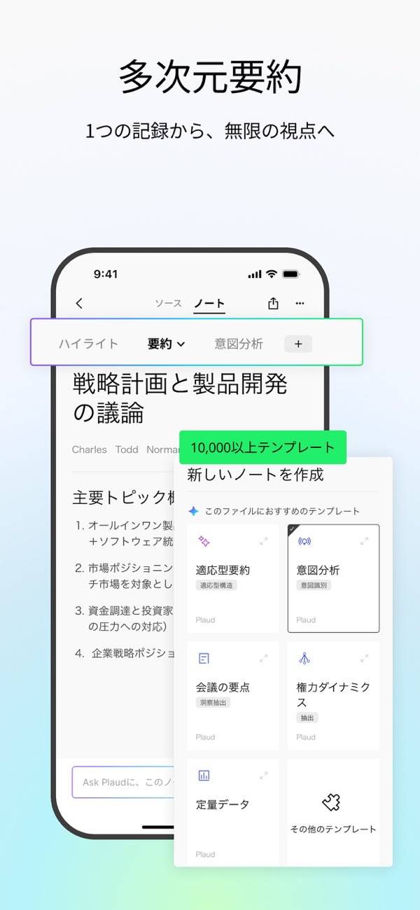 - 録音内容を解析し、ToDoリストなどのテンプレートに落とし込める