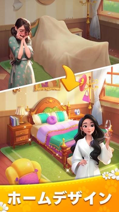 マージパズルを進めるほど、女性が幸せに。パズルで集めたスターで、女性の部屋を改装していきましょう。ソファーやベッドなどの調度品が、少しずつ豪華になっていきます。暗い表情をしている女性も、いつか立ち直ってくれるはず。