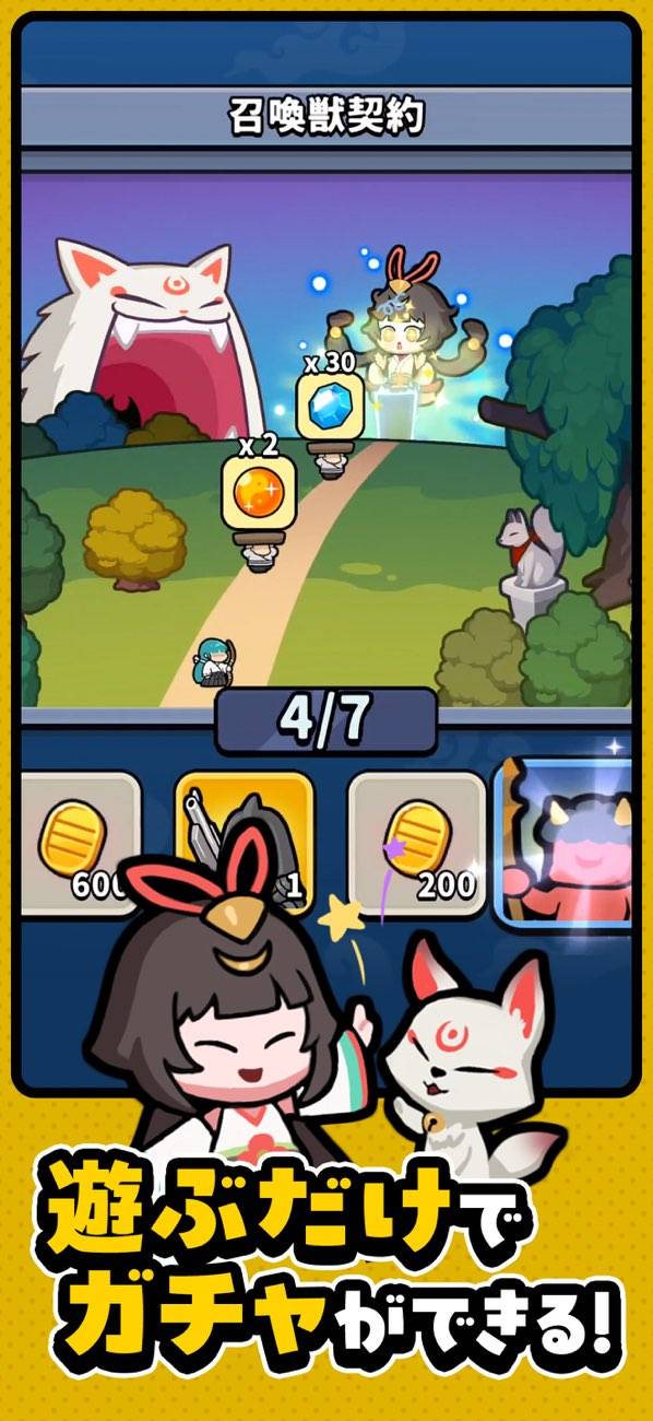 類似ゲームにあるガチャシステムのように、召喚獣契約で召喚獣の収集・契約が行えます。契約に必要な巻物は、ミッションクリアやゲーム進行でそれなりの数を獲得可能。