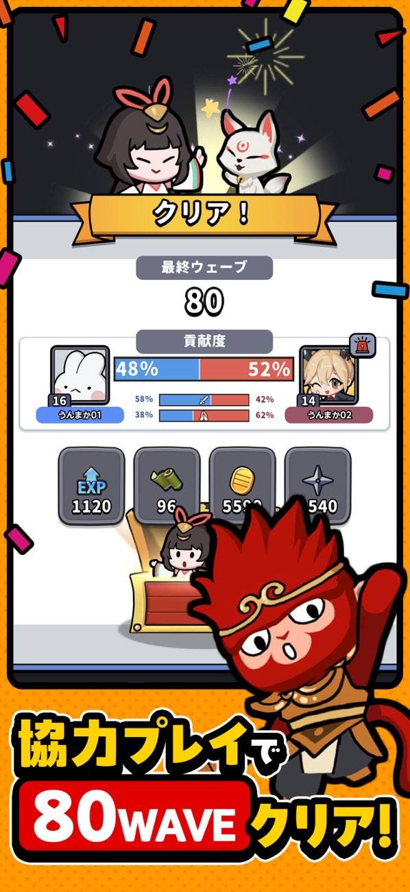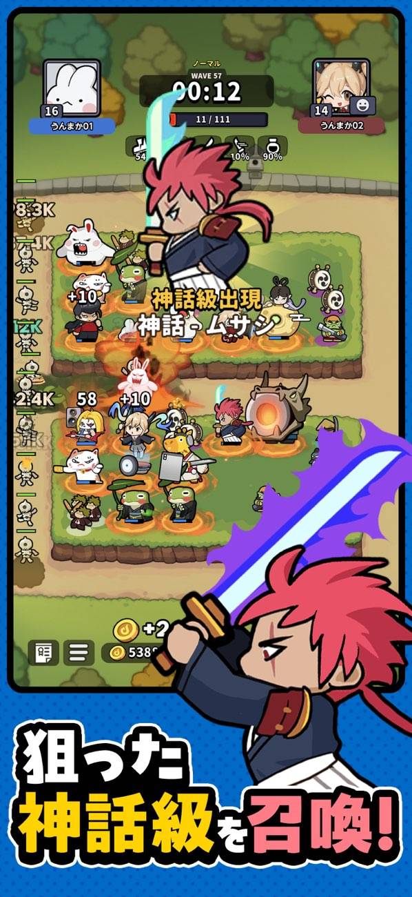 敵を撃破し獲得したコインで、召喚や強化が行えます。召喚を優先して手数を増やすか、全体を強化してパワーの底上げをするか悩みどころです。