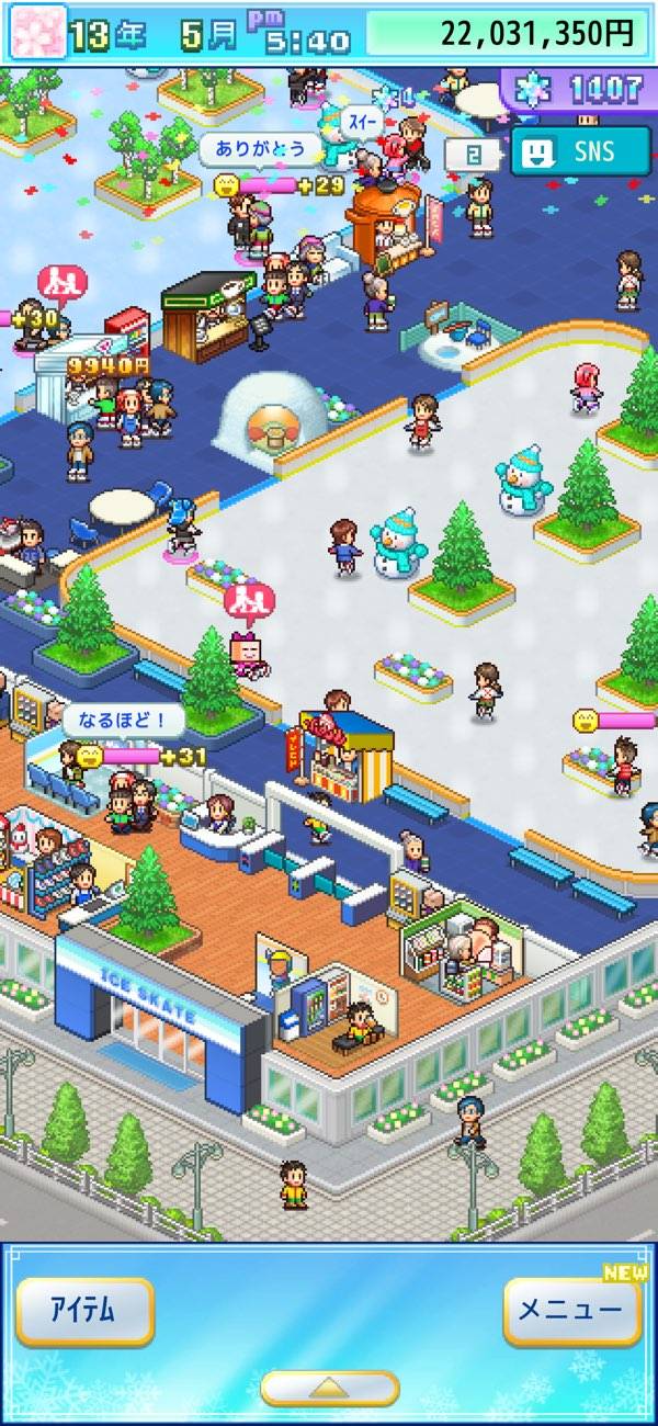 - お馴染みシステムでスケート場経営。上から眺めるミニチュア感が良い