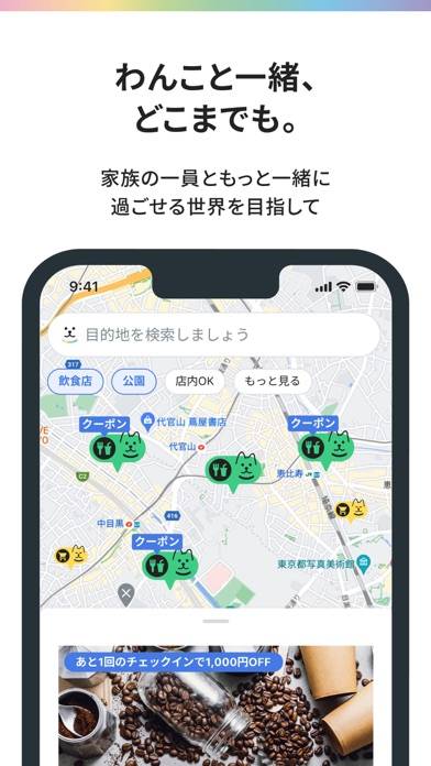 アプリ内のマップ機能では、愛犬同伴可能な施設を簡単に探せます。自宅周辺の穴場スポットや、旅行先でのスポットなど、新しいお出かけ先を発見しやすいのが特徴です。各施設の入店条件も事前に確認できるため、スムーズな施設利用が可能になるでしょう。