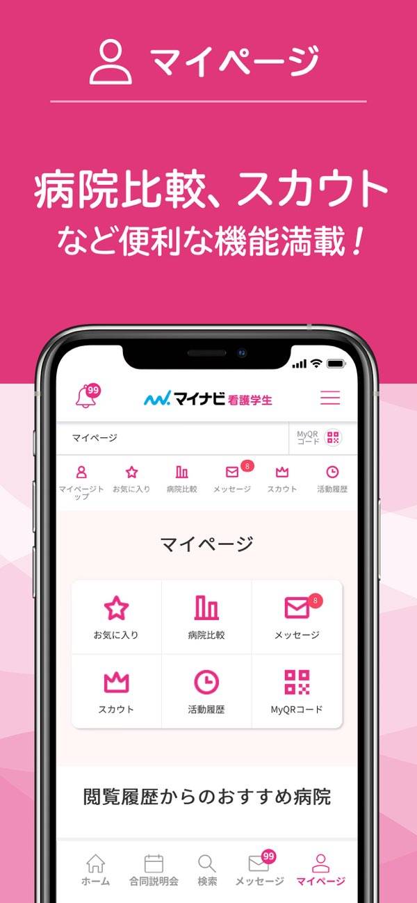 新卒の看護学生向けの採用情報やセミナー情報が詰まったアプリ。日本全国にある病院やクリニックを検索でき、アプリからエントリーが行えます。自分のプロフィールを書き込むことで直接スカウトがかかることもあり。