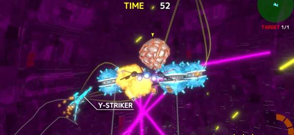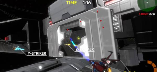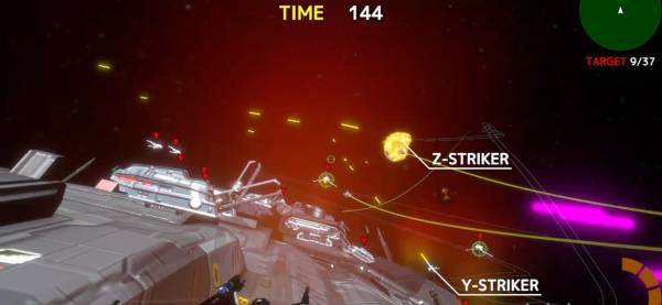 シームレスに進行するミッションもいい感じに期待を煽ってくれます。最初は宇宙戦艦の周辺にあるターゲットの破壊が目的。それを見事完遂すると、次は戦艦内部へと進入しコアの破壊を目指します。果たして最奥に待ち受けるものは……?