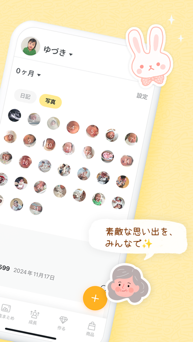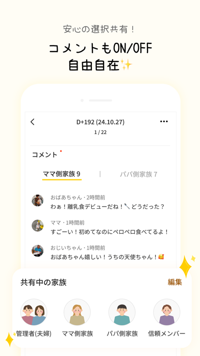 - スタンプや成長ムービーなど、家族で楽しめる機能がたくさん