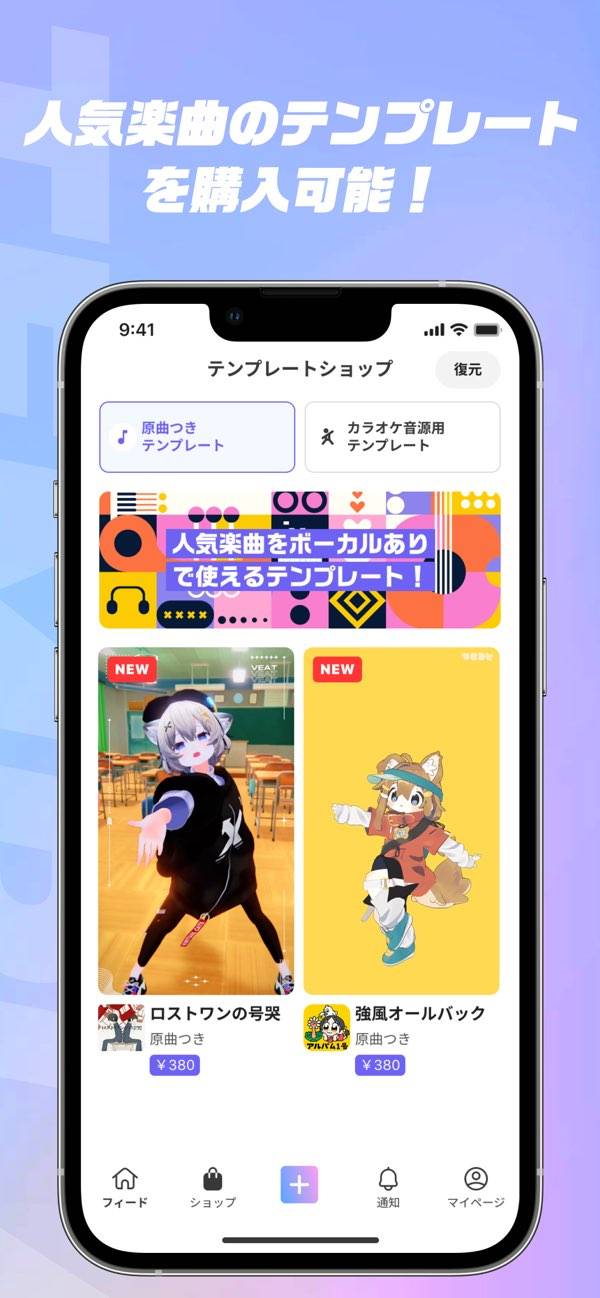 3Dアバターと人気楽曲を組み合わせて、オリジナルのダンス動画が作れるアプリ。「はいよろこんで」や「ロキ」など人気曲を収録。さらにVRoid Hubとの連携で自作アバターも使えます。リミックス機能を利用すれば、ほかユーザーの作品をアレンジしたり、モーションや背景を自由にカスタマイズしたりも可能です。