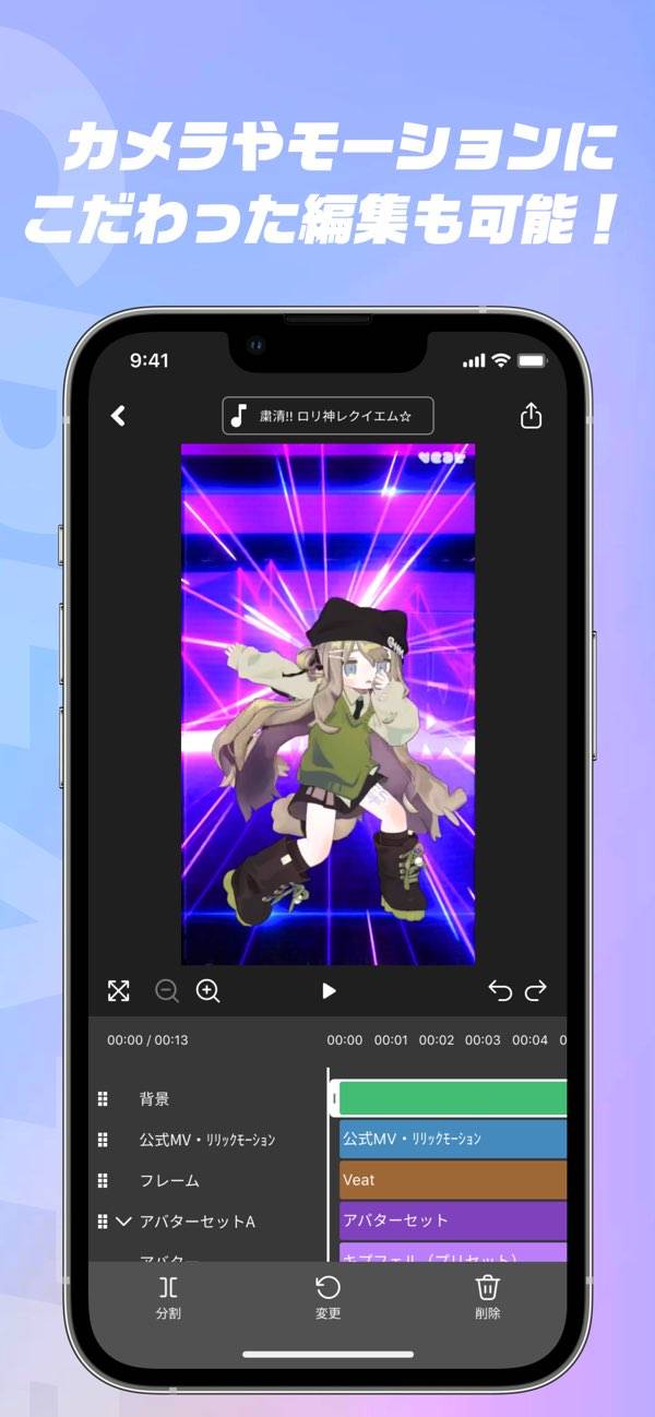 - 3Dアバターが曲に合わせてダンシング。編集で思い通りのダンス動画を
