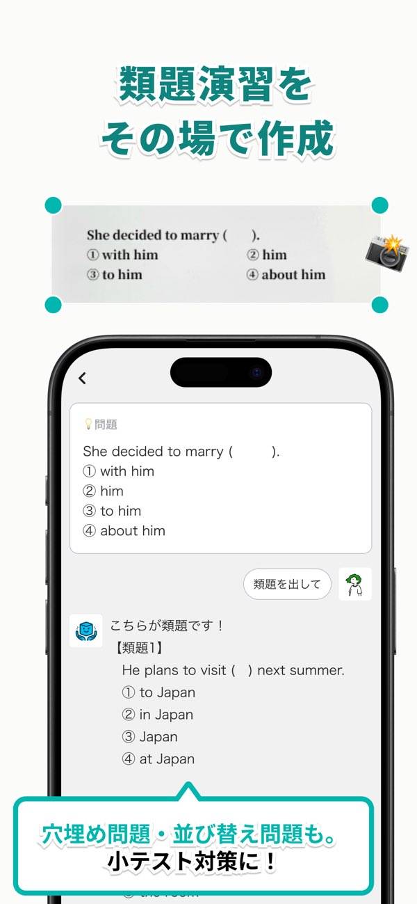 わからない英語や数学の問題をスマホで撮ると、その内容に合ったヒントや解説が返ってくるアプリです。問題文の構造が難しい長文や入試レベルの応用問題でも対応。質問は何度でもできるので、納得するまでとことん聞けますよ。テスト前や宿題に追われるときの強い味方です。