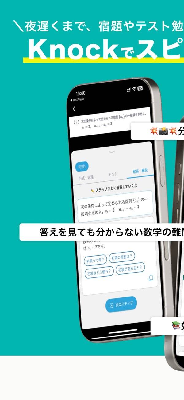 Knockノック-英語・数学の問題を解いてくれる勉強アプリ