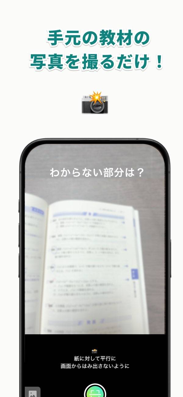 英語や数学など、わからない問題をスマホで撮るだけで、その内容に合ったヒントや解説がすぐ返ってきます。使い方はとても簡単で、アプリを開いて問題を撮影するだけ。後は何も入力せずとも、自動で内容を読み取って丁寧に教えてくれます。