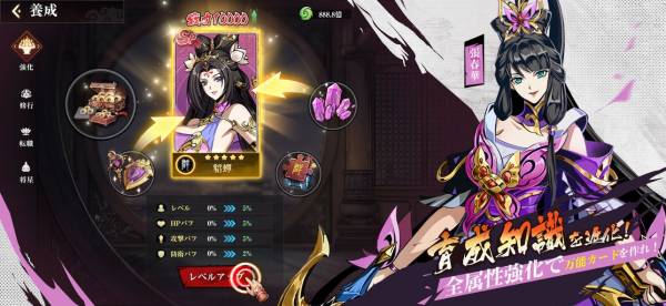 本作の育成は、レベル上げに加え、装備の強化、修行、覚醒といった要素でキャラを強化していきます。特に装備では、各陣営ごとの専用装備があり、大幅なステータス強化が可能に。また覚醒を行うと、新スキルが解放され、より強力なキャラへと変貌を遂げます。