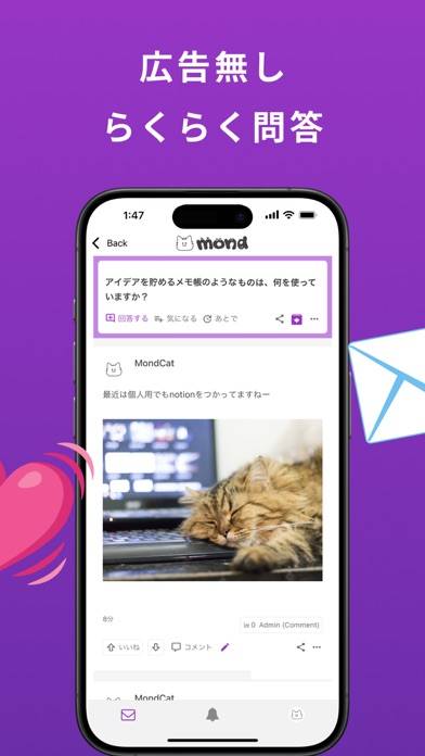質問箱には誹謗中傷が多いと思っていましたが、『mond』はAIが悪質な質問や回答を弾いてくれるため精神的にとてもありがたいです。悩み相談をよく受け付けているので、文字数制限が2万字も記載できる点も魅力を感じました。