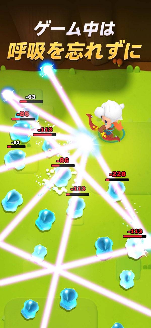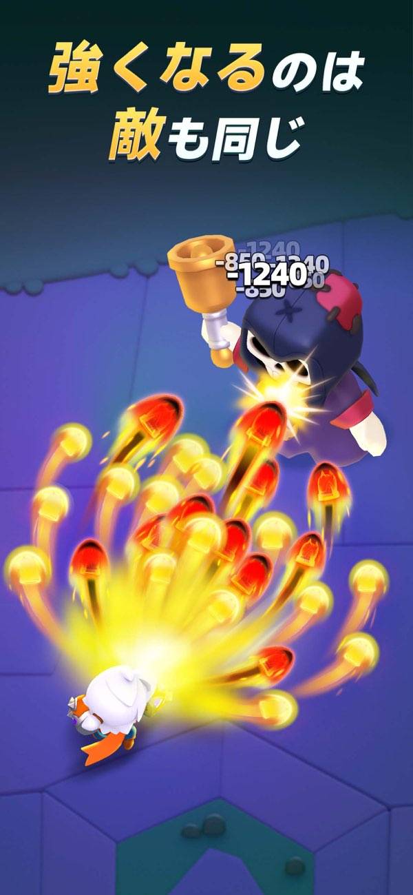 スライド操作だけで遊べるカジュアルなシューティング。すべての敵を倒し、規定のウェーブに到達して、ステージの突破を目指しましょう。レベルアップ時にランダムな効果でキャラクターを強化できる、ローグライク要素が特徴。毎回違った性能で遊ぶ試行錯誤を、手軽なボリュームと操作感でストレスなく楽しめます。